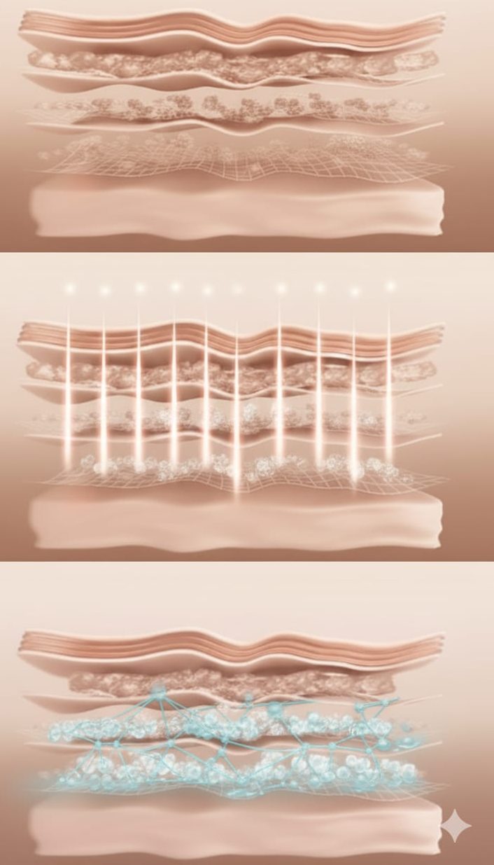 Microneedling ist eine innovative Behandlungsmethode, die von UNPERFECT KOSMETIK angewendet wird, um das Hautbild zu verbessern. Das Bild zeigt eine Hautoberfläche, durch die feine Nadeln sanft eindringen. Diese Mikroverletzungen stimulieren die natürliche Wundheilung und regen die Kollagenproduktion an, was zu einem strafferen und gesünderen Hautbild führt. Durch die gezielte Anwendung dieser Technik können verschiedene Hautprobleme wie Aknenarben, Falten und unebene Hautstruktur effektiv behandelt werden. UNPERFECT KOSMETIK steht für eine individuelle und ganzheitliche Herangehensweise, die auf die Bedürfnisse jeder Haut abgestimmt ist.